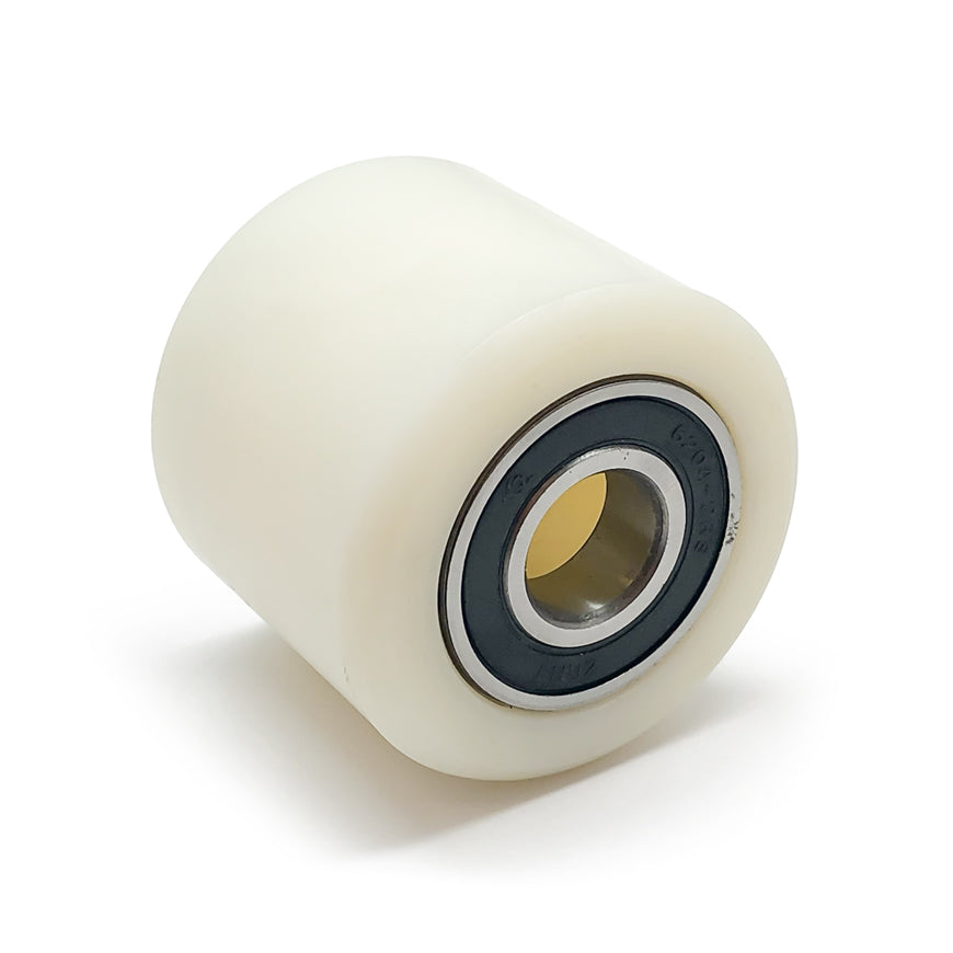 Premium quality white nylon load roller including bearings.